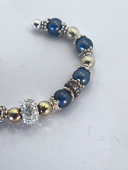 Mardi Gras Pave CZ and Black Pearl Cuff Bracelet