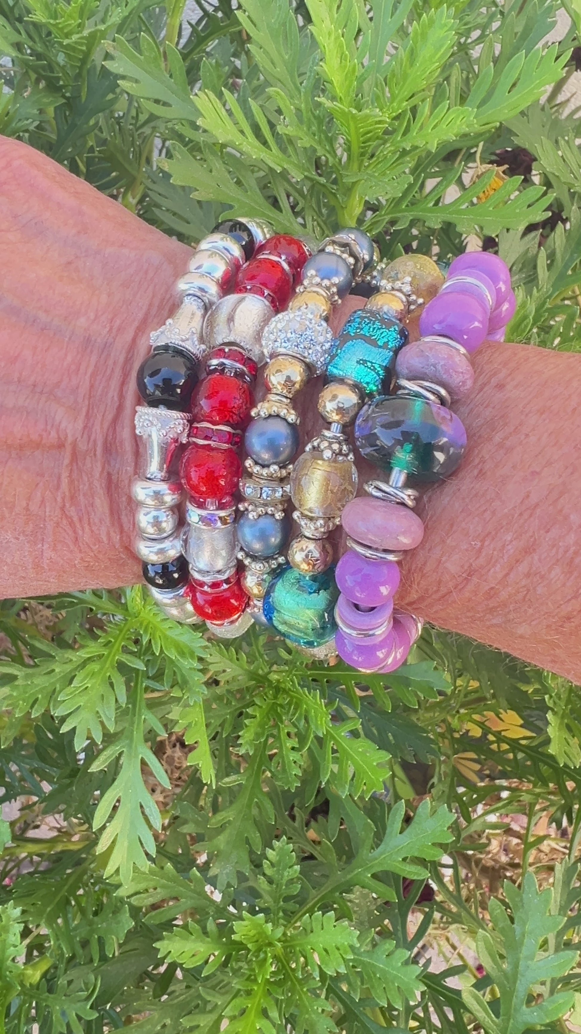 Mardi Gras Pave CZ and Black Pearl Cuff Bracelet